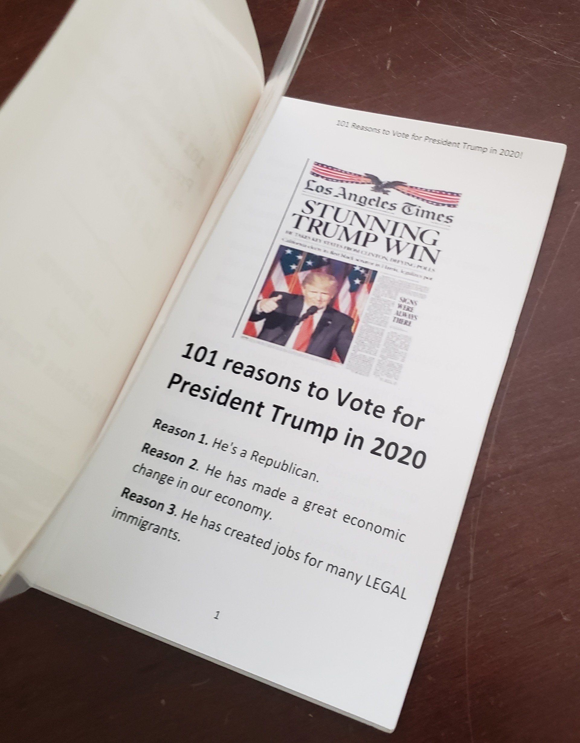"101 Reasons" is a book describing the progress Donald Trump has made, reasons for four more years!